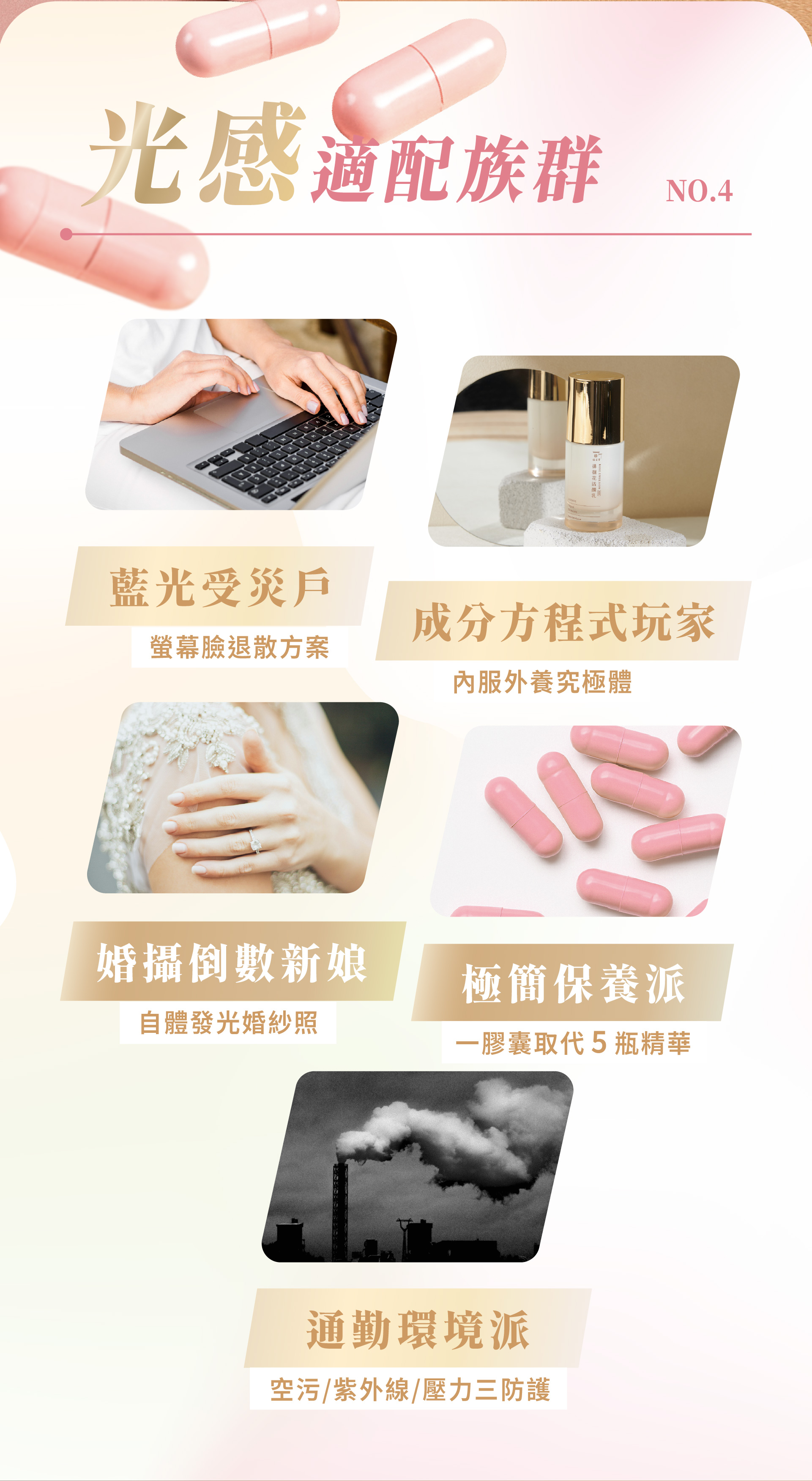 💡 光波再生循環:維生素C/E,促進膠原生成,光感續航