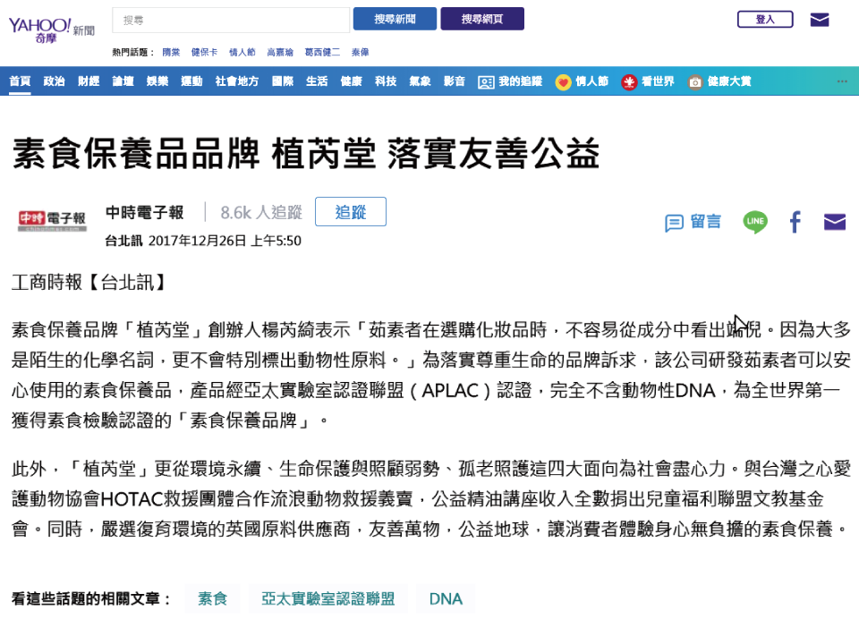 植芮堂 | 素食保養專賣 | 素食保養品品牌 植芮堂 落實友善公益 | YAHOO!奇摩 新聞