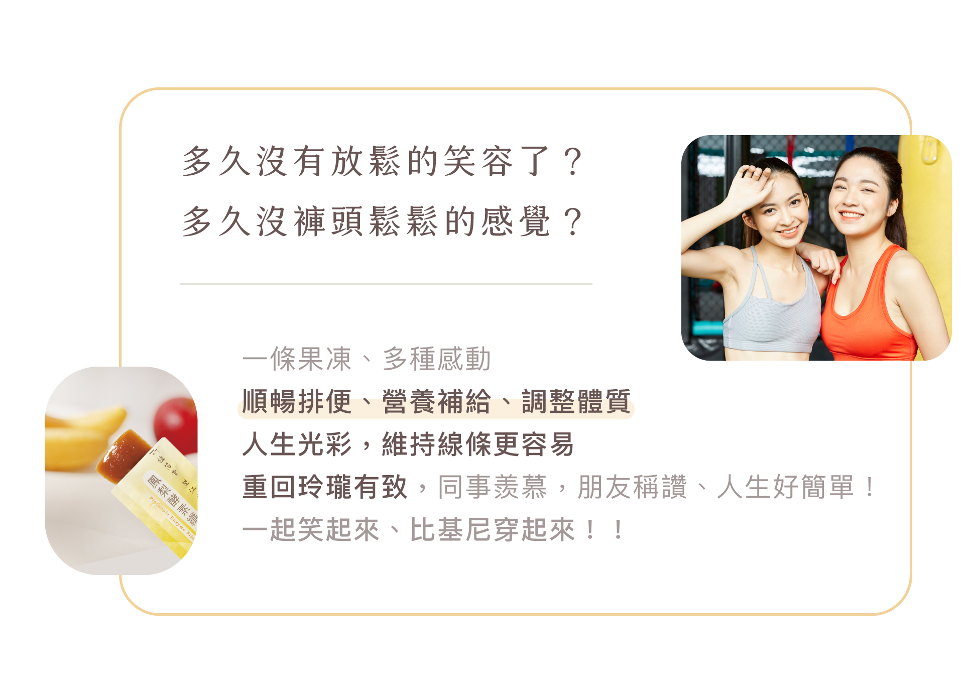 針對外食飲食不均衡,天天順暢設計的果凍,以保養品起家,產品以美容為出發點作為研發,營養的平衡與補充,搭配保養品增加3倍的效率