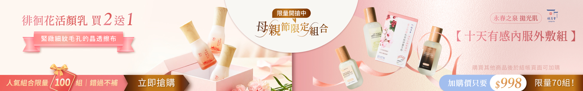 買2送1 !! 母親節限量明星組合【緊緻細紋毛孔的晶透擦布】徘徊花活顏乳2+1組 / 限量100組 /