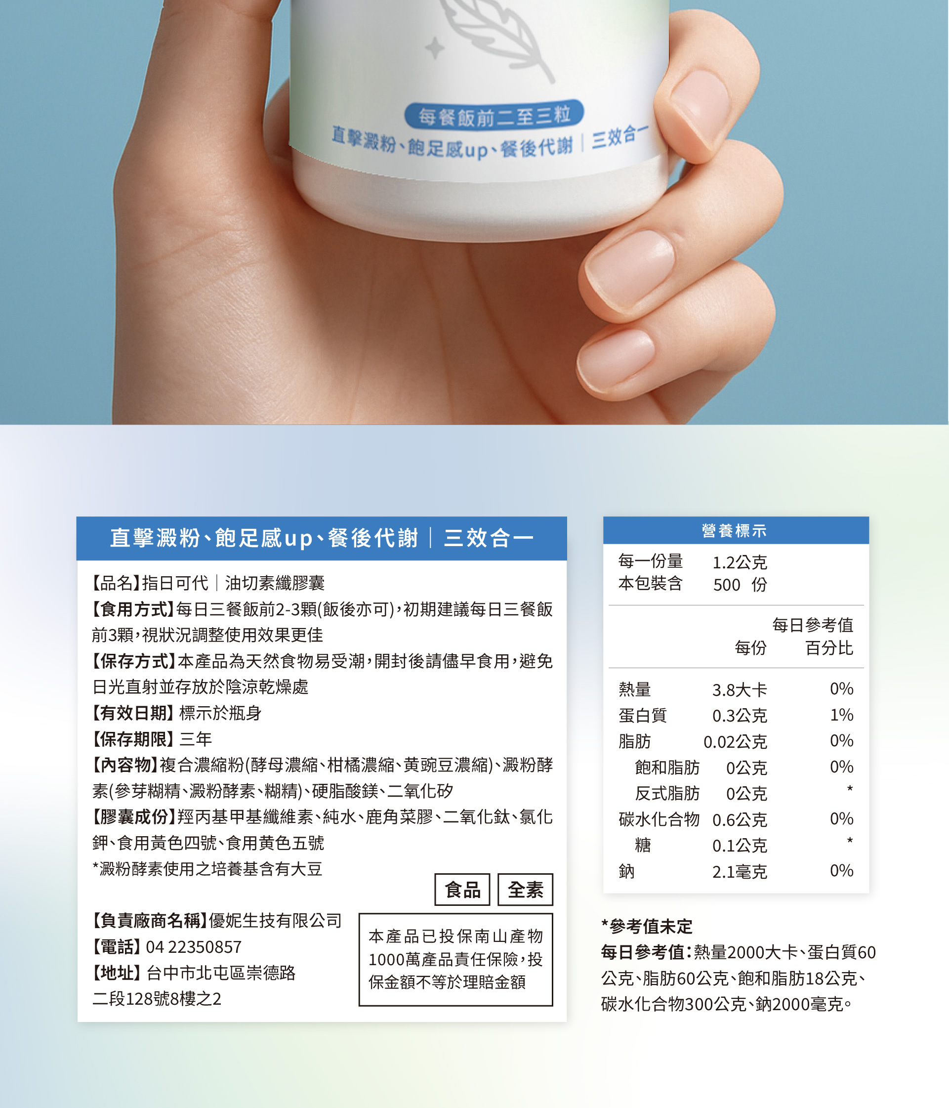 【黃金三比八 看到磅秤也會笑】指日可代|餐前素纖膠囊(60粒)