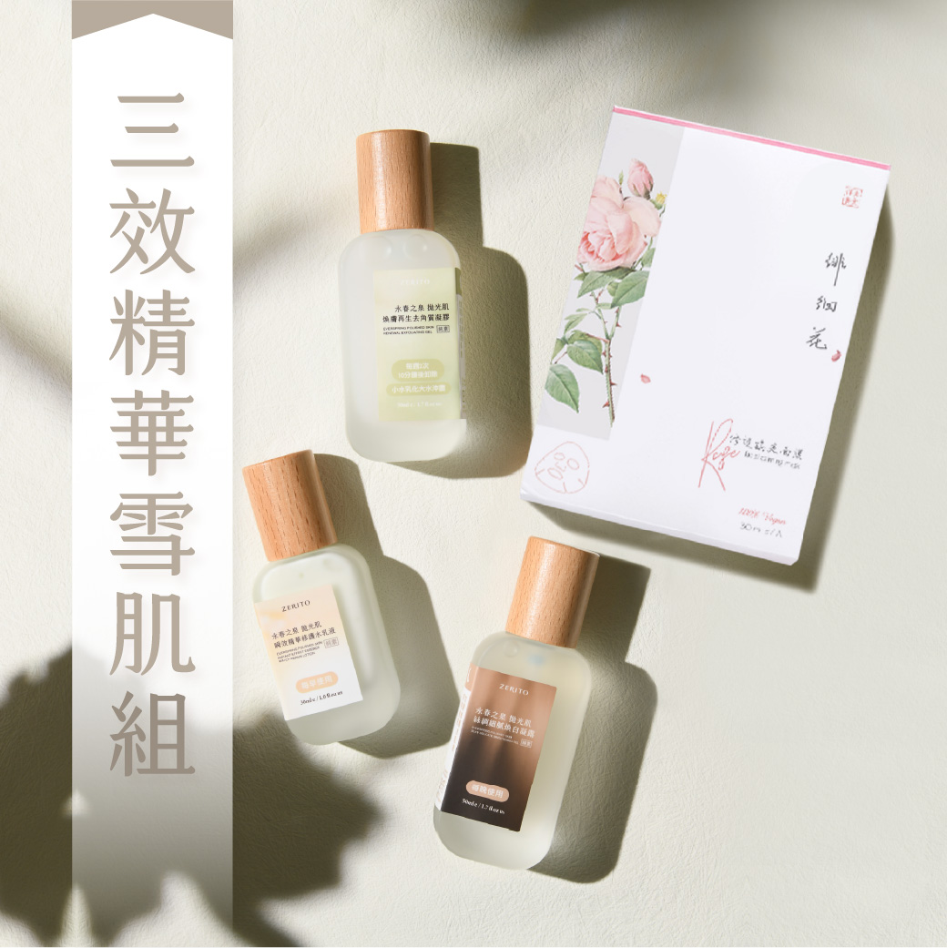 永春之泉 拋光肌【 三效精華女神雪肌養護組】煥膚凝膠X煥白凝露X修護水乳液X面膜1盒