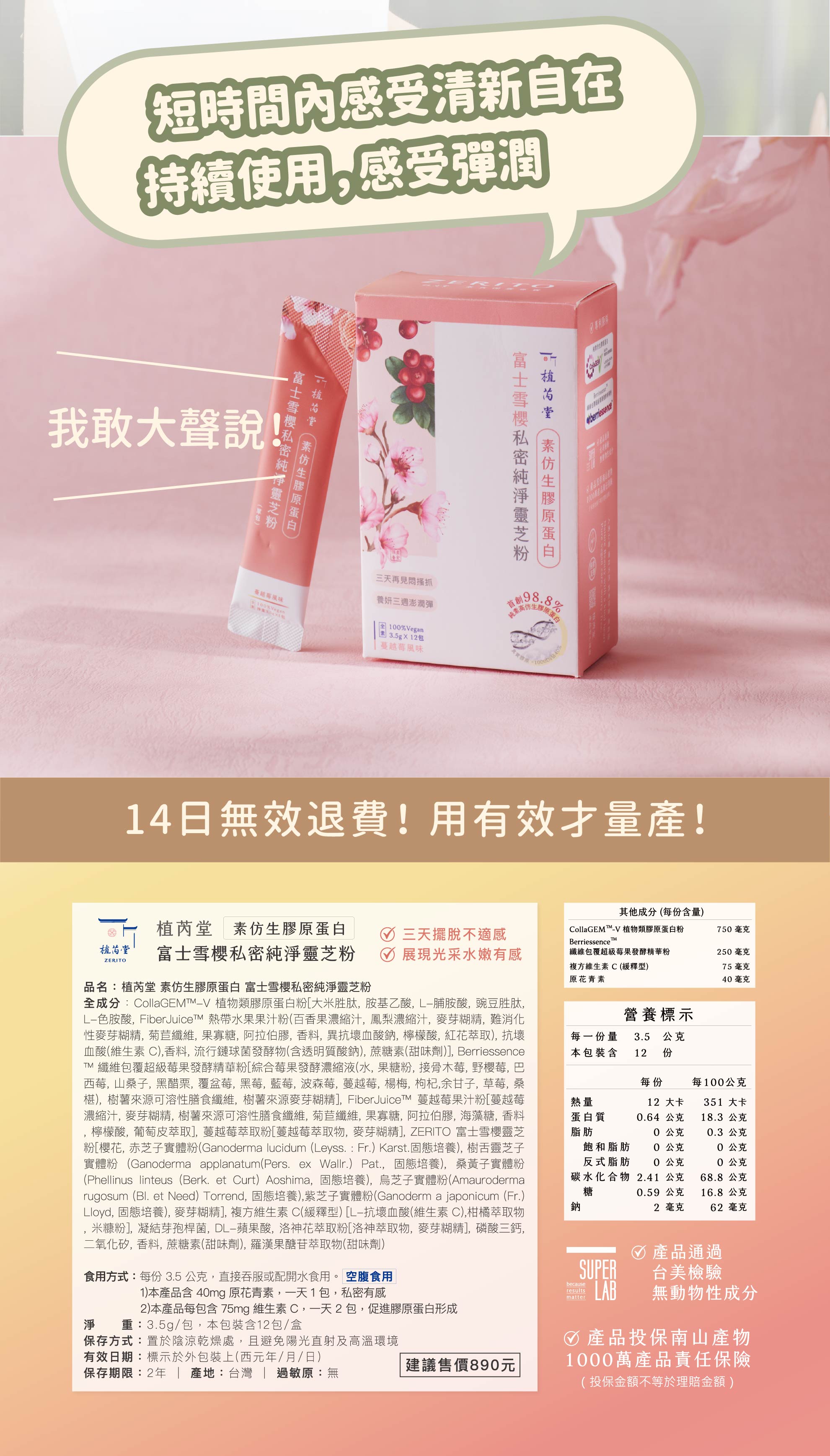 素仿生膠原蛋白 富士雪櫻私密純淨靈芝粉 膠原補充 X1盒